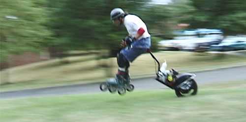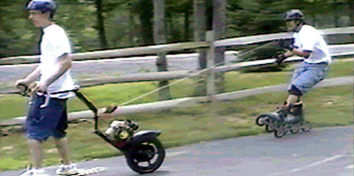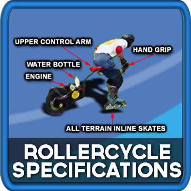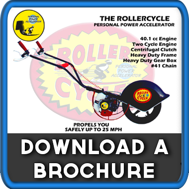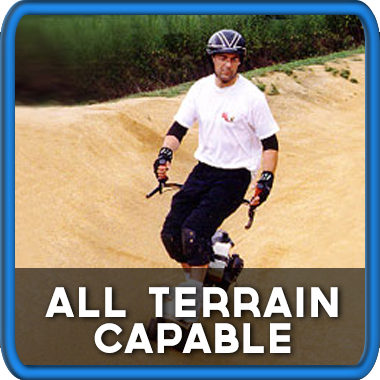 For use with inline skates, roller blades, and skateboards. Rollercycle will take you up to 25 mph over grass, snow, dirt and asphalt
